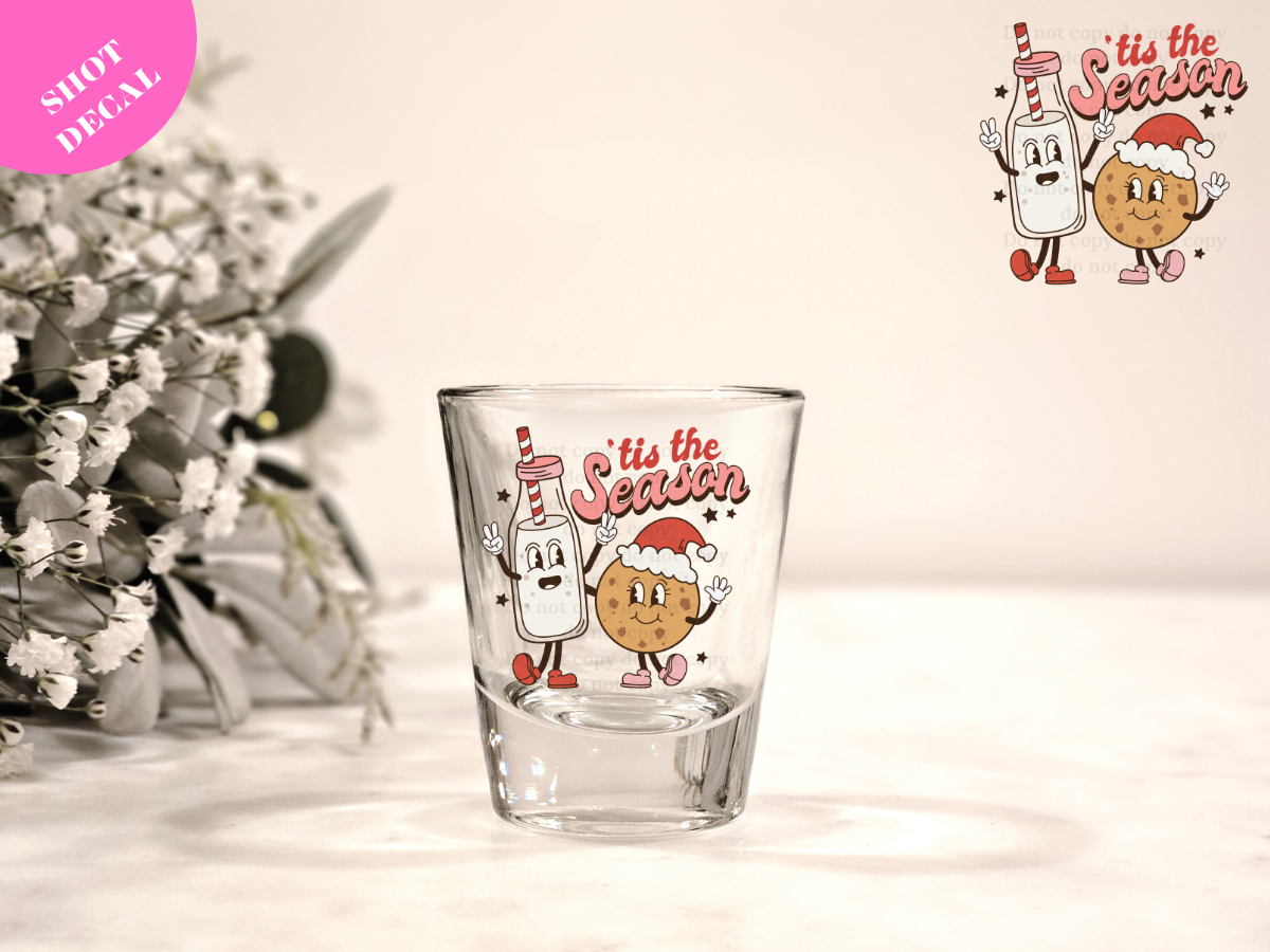 Tis the Season (milk and cookie) UV DTF Shot Decal